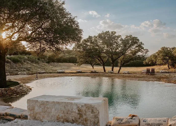 Nestled in the serene landscapes of Spring Branch, Hummingbird Haus offers an enchanting escape on 20 acres of scenic beauty, only 40 kilometers from the vibrant city of San Antonio. This oasis is perfect for guests seeking tranquility and outdoor adventures, enhanced by the warm glow of a firepit under expansive Texas skies. The stylishly designed villa embraces the charm of southern hospitality while providing modern comforts to create an unforgettable stay.